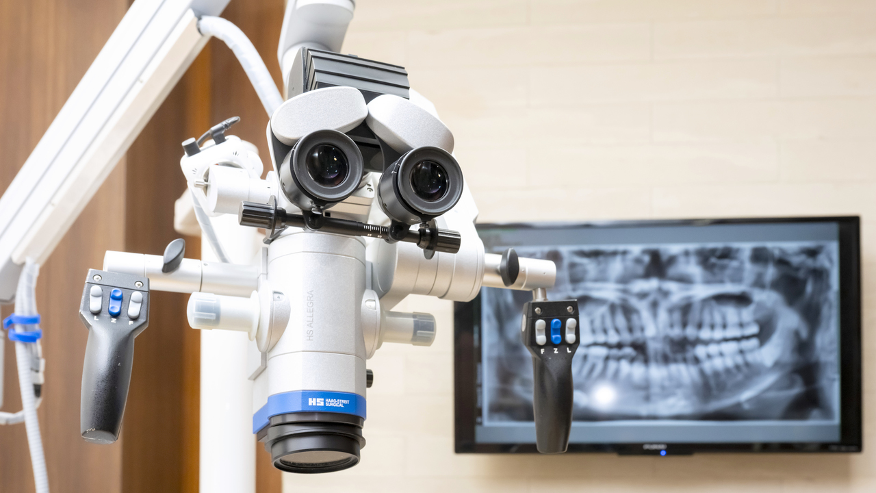 歯科用の顕微鏡です。肉眼では見えにくいところもしっかり確認し、治療精度の向上につなげています。