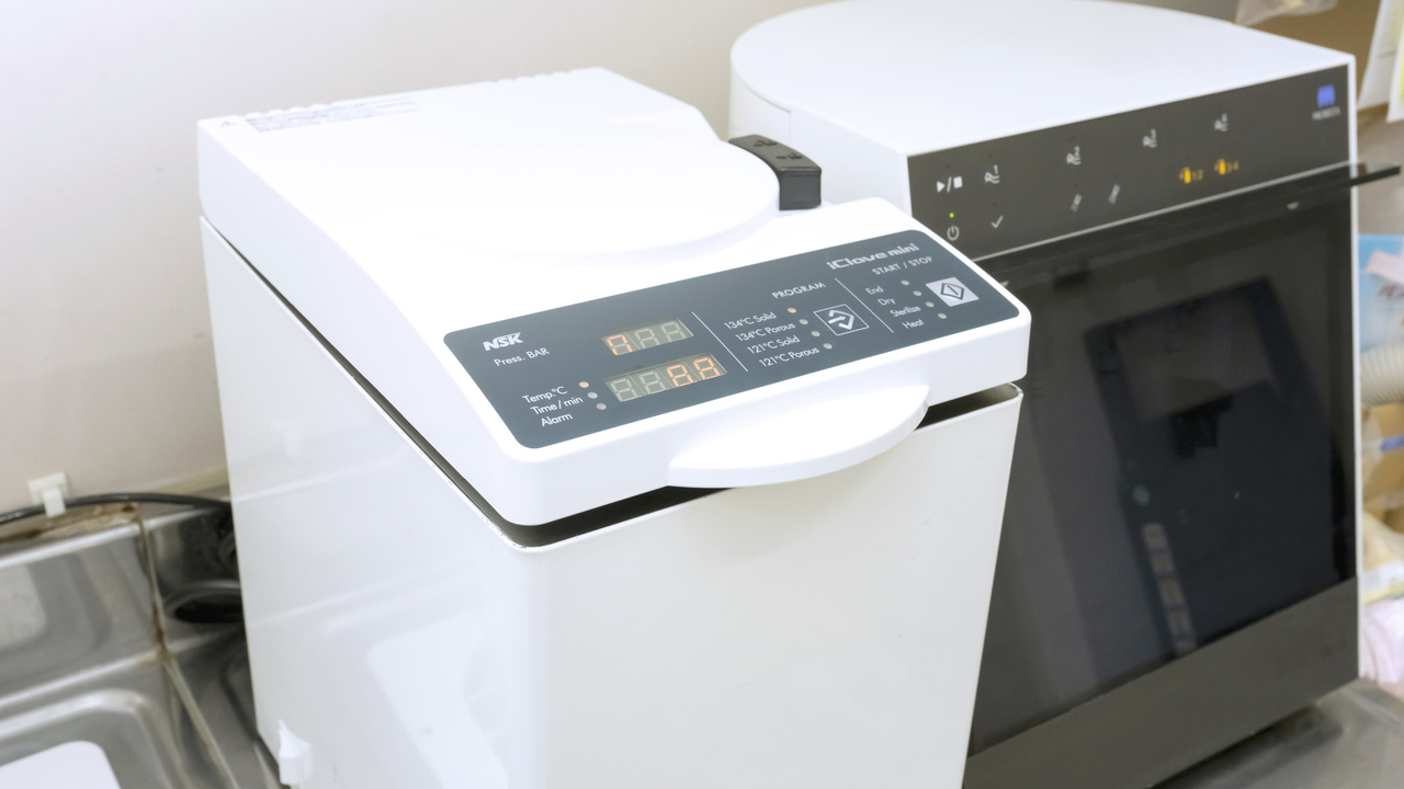 歯を削る際に使うタービンやハンドピースなどの器具を滅菌するための設備です。しっかりと滅菌処理を行って、院内感染を予防します。