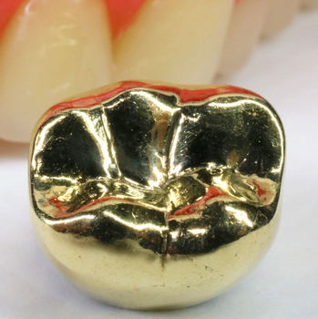 金を用いたインレー(詰め物)・クラウン(被せ物)です。強度があり、安定して使用できます。また歯との間に隙間ができにくく、汚れの侵入による虫歯の再発を防げます。