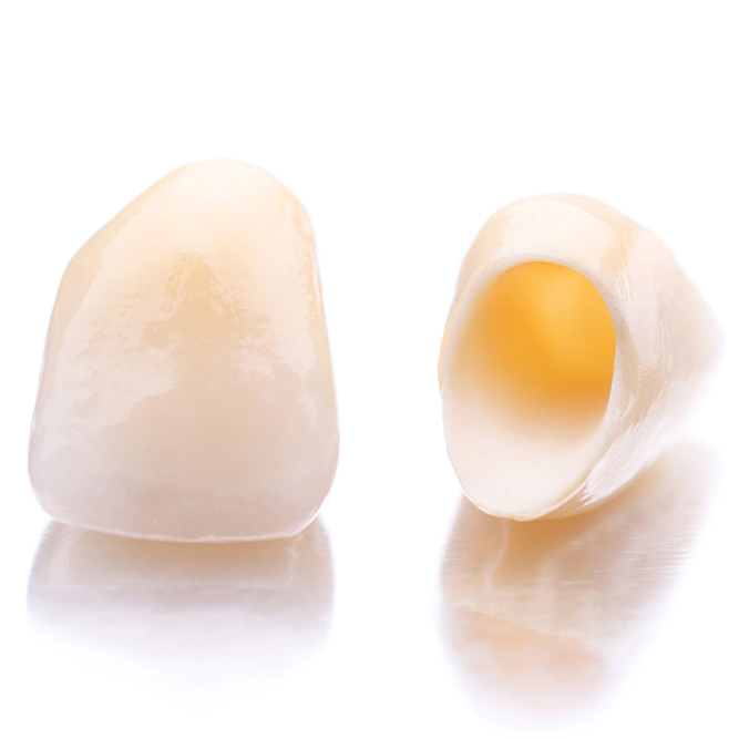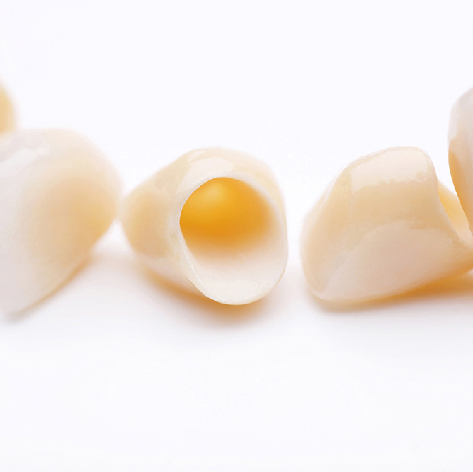 金属やプラスチックを一切使わず、セラミックのみで作られるインレー(詰め物)・クラウン(被せ物)です。透明感に優れており、天然の歯のように美しい仕上がりを目指せます。変色しにくく長期的な美しさを保てる点、劣化が少ない点、汚れがつきにくいため虫歯や歯周病のリスク低下につながる点がメリットです。