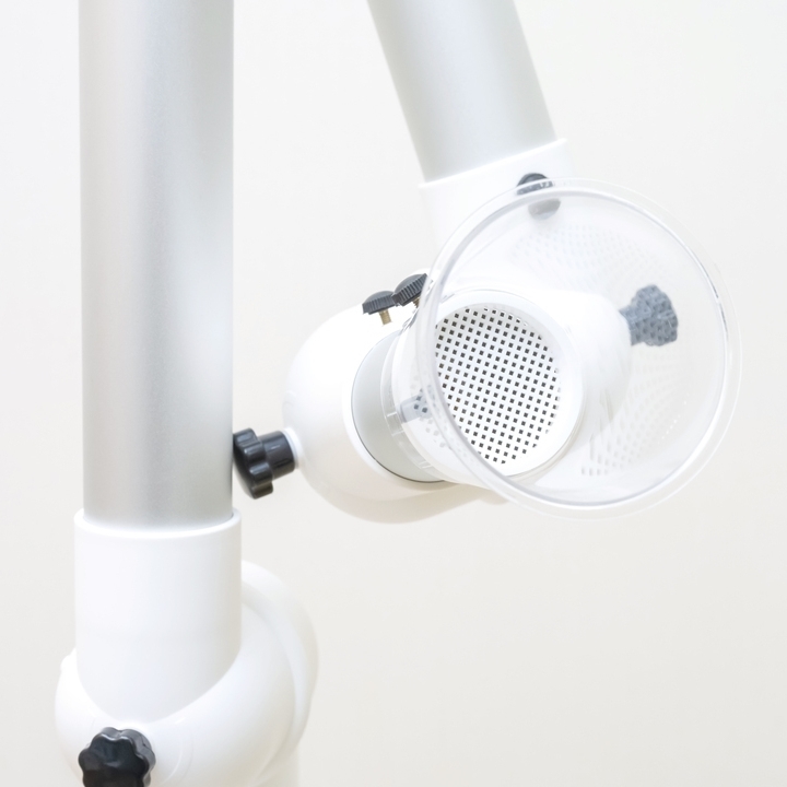 例えば、治療中にお口の外へ飛び散る削りカスや血液、唾液などが飛散しないよう「口腔外バキューム」で吸引し、飛沫感染を防いでいます。