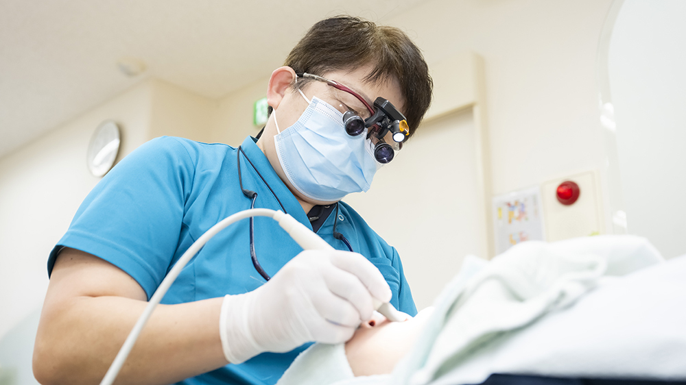 さらにお口のクリーニングでは、歯にこびりついた歯石を丁寧に除去。治療が終了した後は再度詳しい検査を行い、治療前に行った検査結果と比較して、歯周病が改善しているかどうかを確認するようにしています。
