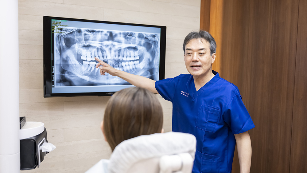 模型を使ってわかりやすく説明する他、お口の中がどのような状況か理解しやすいように、レントゲン写真やお口の中の写真をお見せしながら説明していきます。