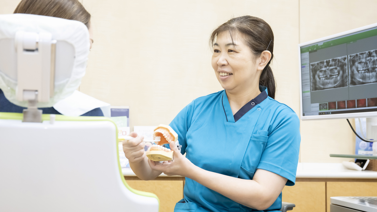 当院は、患者さまそれぞれのお口の状態やライフスタイルに合わせた歯磨き指導を実施。一人ひとりに合った方法で、無理なく続けられるセルフケアを身につけていただけます。
